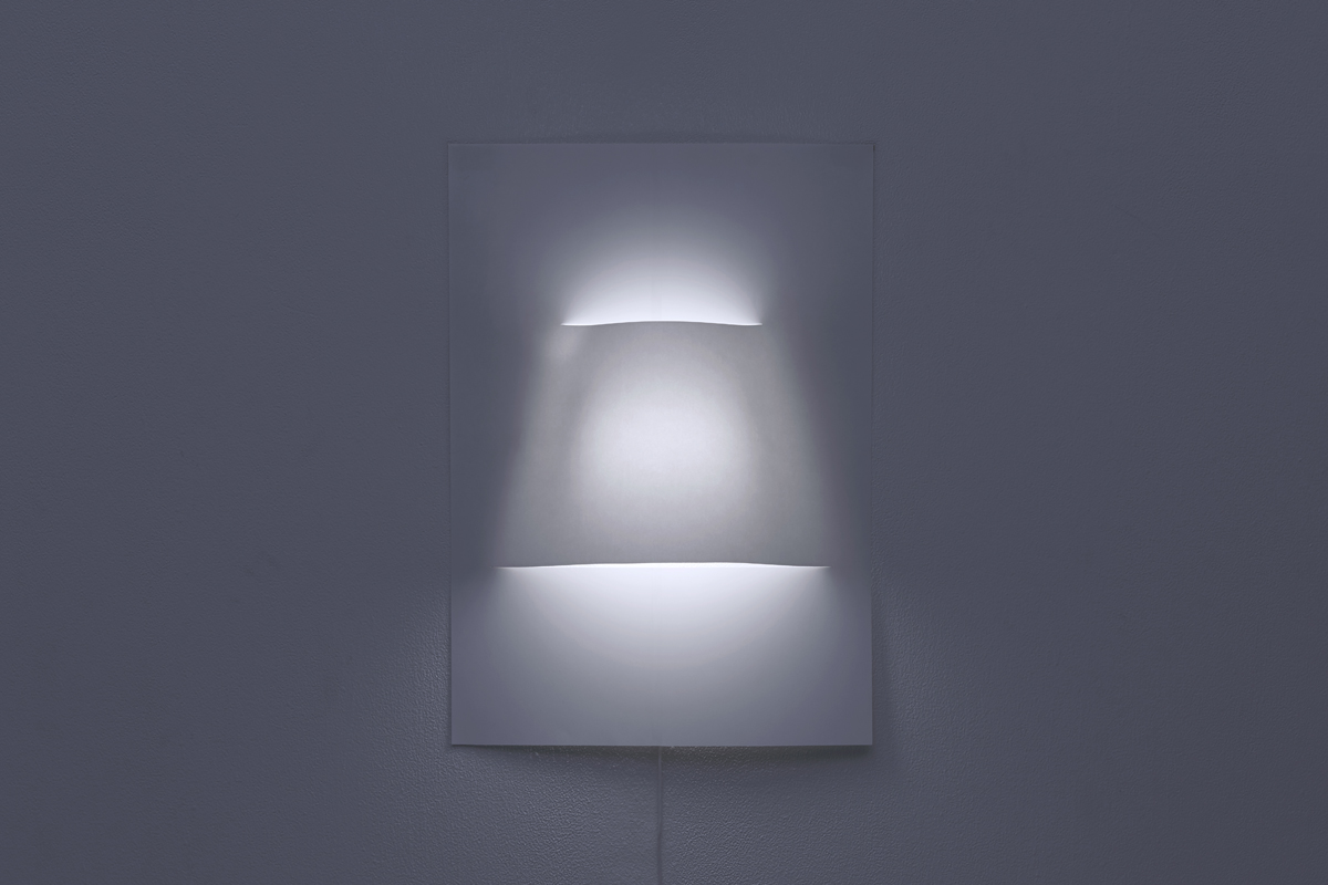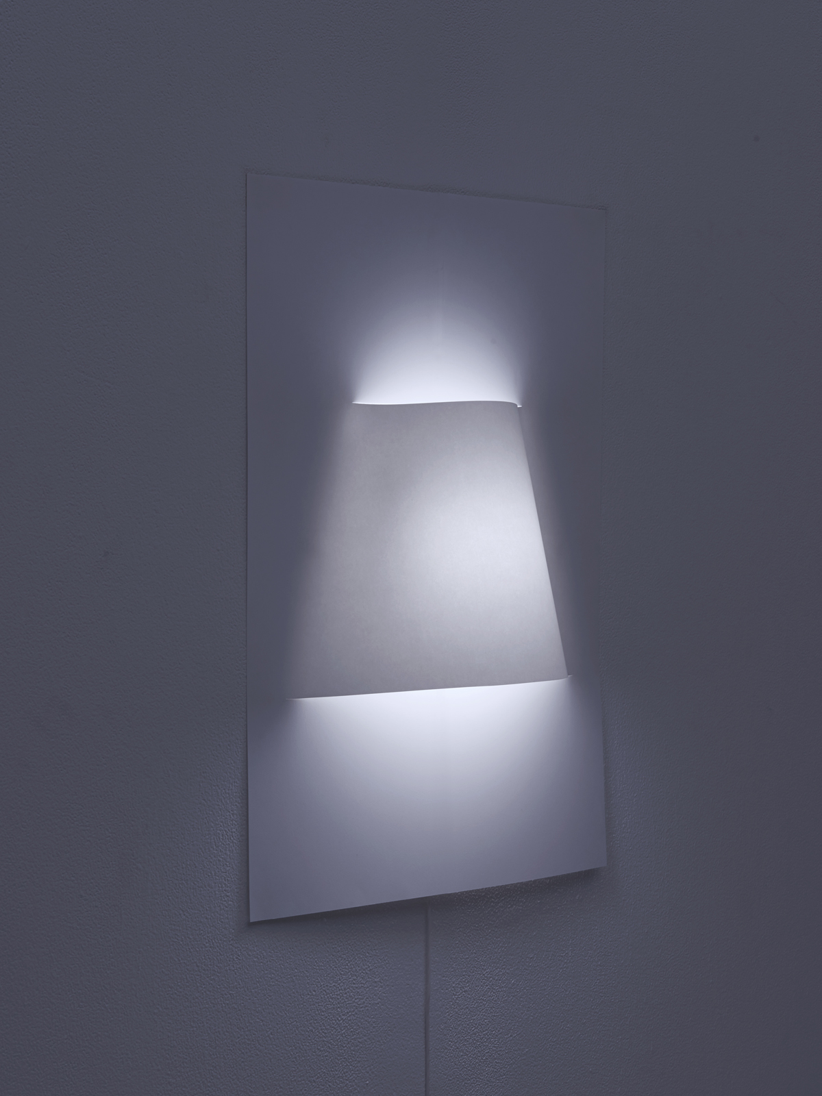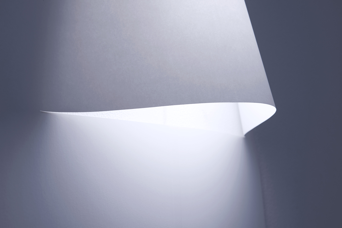 A2サイズのポスターのような壁付け照明シリーズ。一枚の紙からできており、中央にランプシェードのふくらみがある。ポスターと同じように、テープやピンで壁面に簡単に取り付けられ、様々な柄を印刷することができる。