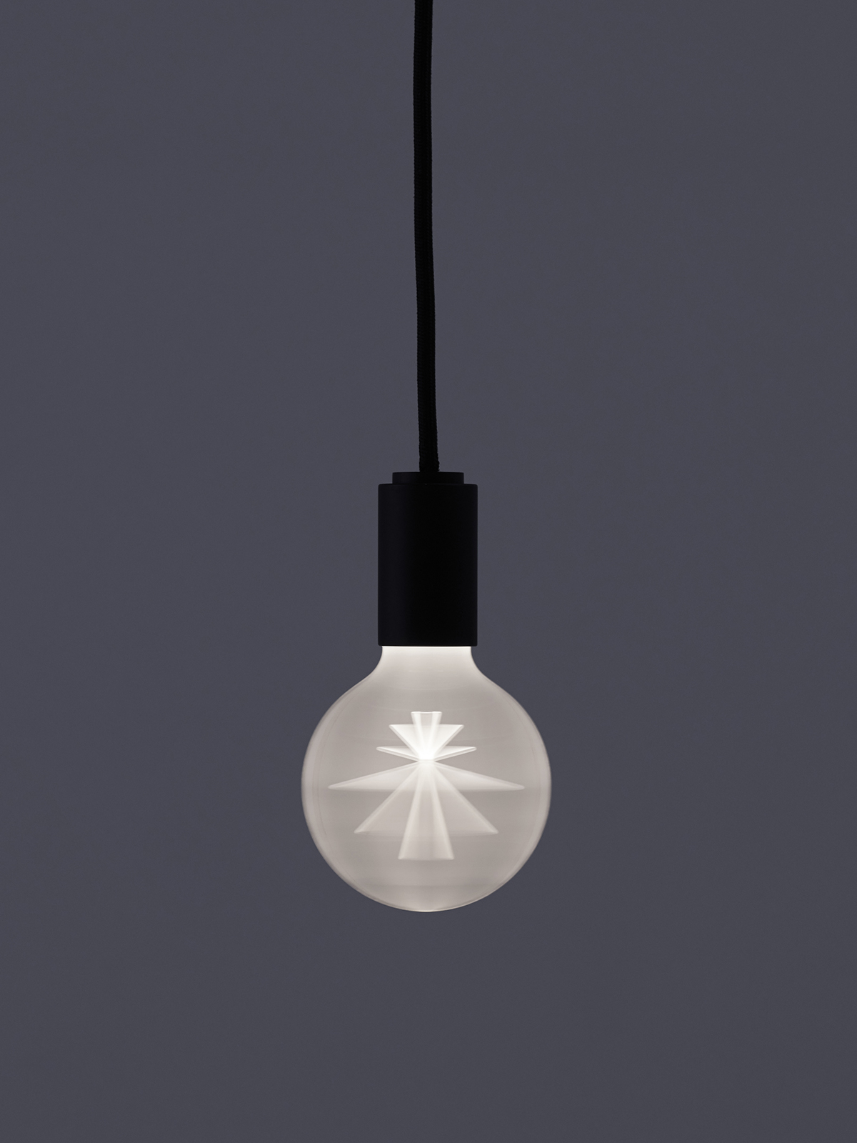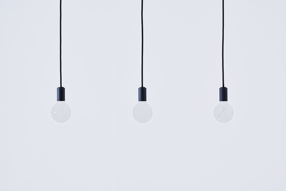 This is a pendant lamp with an acrylic plate with a pattern. Switching the light on, the plate starts revolving and a three-dimensional image will appear. A motor is inside the socket and various images can appear according to a pattern drawn in the plate. This was created in the project of Tanseisha which is a company that designs and builds commercial spaces.