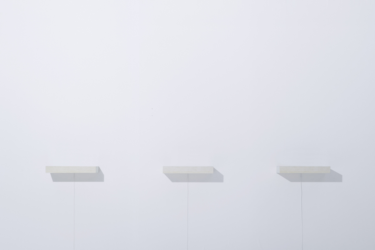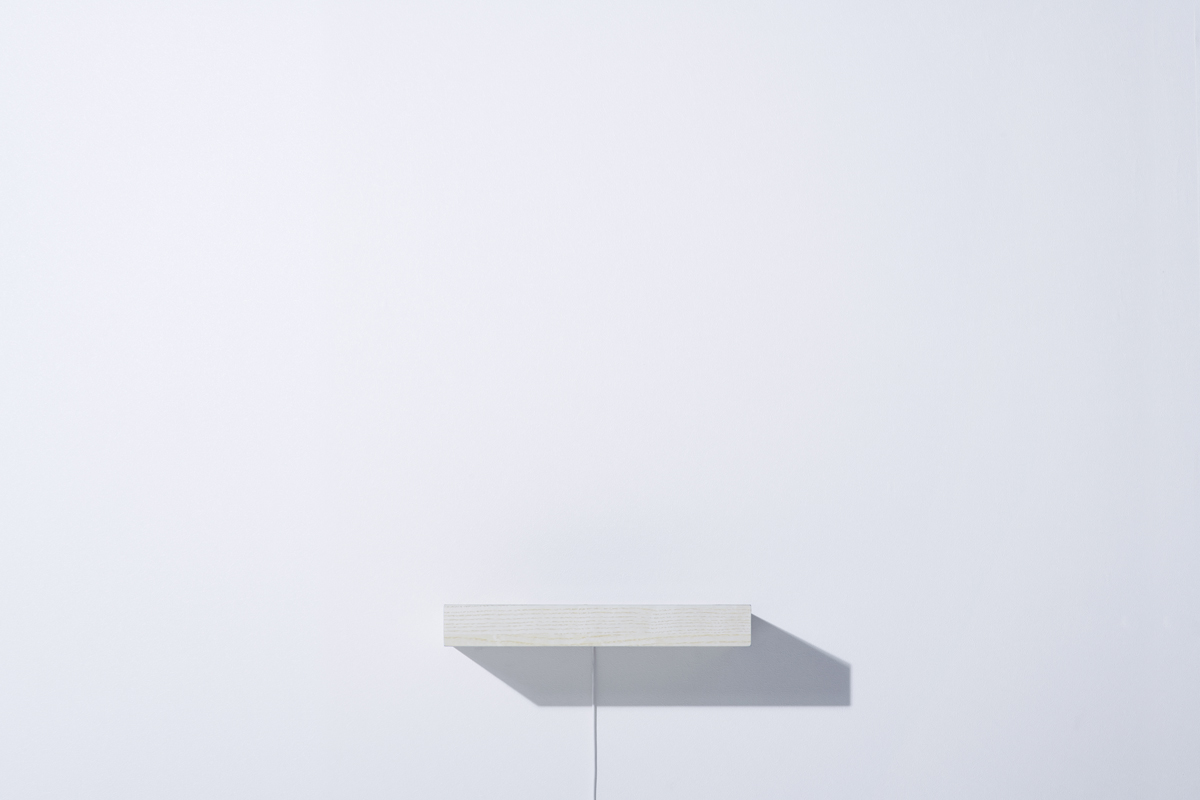 OBJECT is a wallshelf-shaped lamp. A LED and masking sheet are placed inside the 40mm thick shelf to create the perception of an object by casting its shadow onto the wall above the shelf. This work was created for YOY’s exhibition titled “EXISTENCE” held at Milan Design Week 2019.