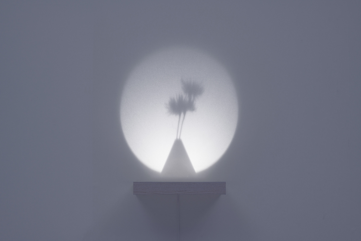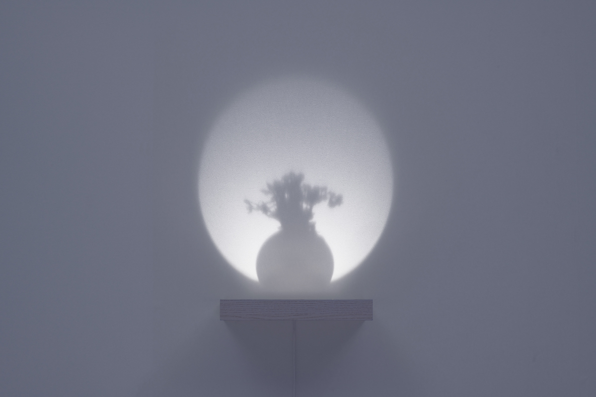 OBJECTは、壁掛け棚の形をした照明。厚さ40mmの棚の内部にはLEDとマスキングシートが配置されており、この棚を設置した壁面に物体の影を投影することで、存在しない物体を感じさせる。この作品は、ミラノ・サローネで開催した個展「EXISTENCE」展のために制作された。